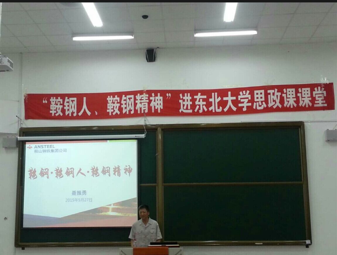 思想政治理论课特聘教授、鞍山钢铁集团公司党委宣传部、动漫h部部长聂振勇为浑南校区师生讲授思想政治理论课,主题是“鞍钢·鞍钢人·鞍钢精神”。鞍钢集团公司代表、郭明义爱心团队代表、动漫h
