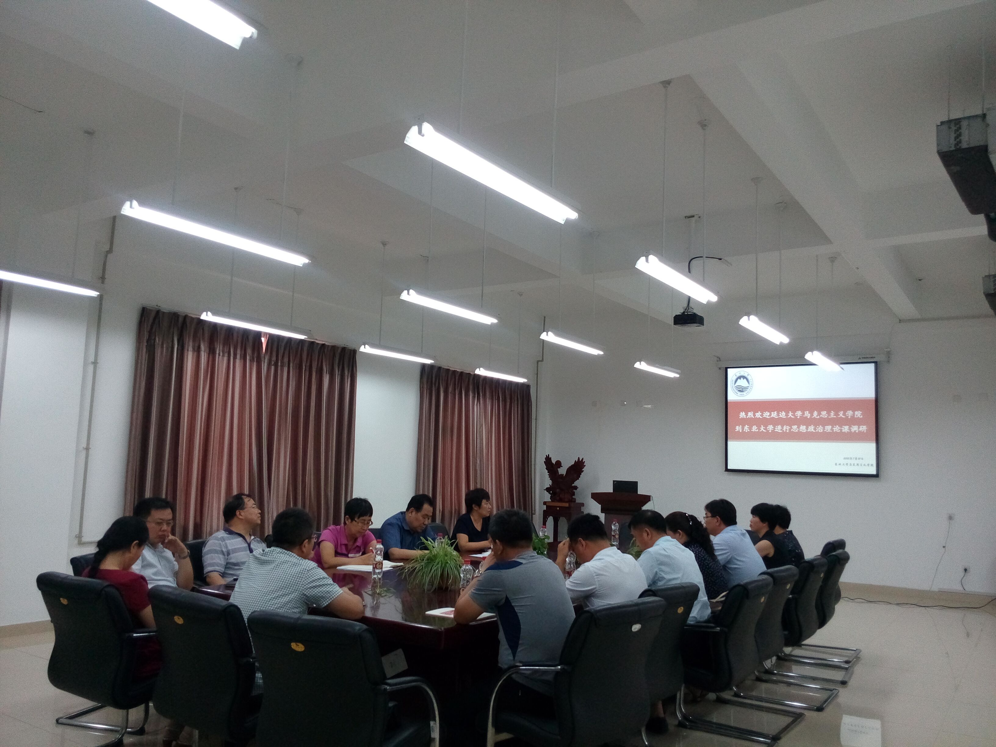 进行思想政治理论课调研。学院部分教师代表参加座谈会。会议由副院长周莉主持。