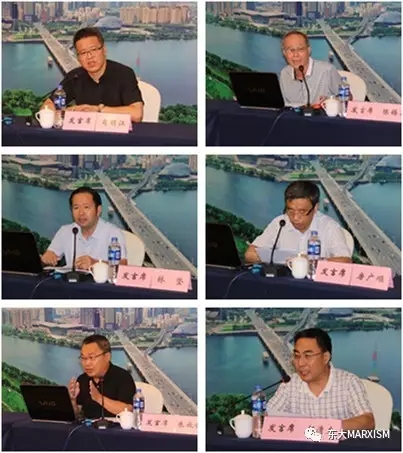 中共辽宁省委宣传部理论处处长肖明江,上海交通大学特聘教授、马克思主义理论研究中心执行主任陈锡喜,《中国人民大学学报》编审林坚,辽宁大学动漫h 党委书记、辽宁省马克思主义学会副会长房广顺教授,东北财经大学动漫h 院长、辽宁省马克思主义学会副会长朱成全教授、郝清杰教授分别作了题为《哲学要解决什么问题》、《关于文化自信及四个自信研究中的若干问题》、《马克思主义与中国传统文化的结合》、《当代中国马克思主义创新的四个维度》、《经济学的最终目的:人的自由全面发展》、《马克思主义是外来文化吗》的发言。