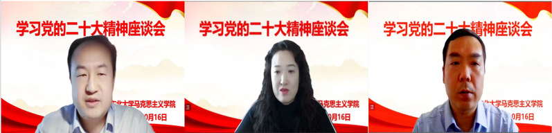 为深入学习领会党的二十大精神,10月16日下午,动漫h 以线上的形式召开学习党的二十大精神座谈会。院长田鹏颖教授、党委书记张满胜及其他班子成员,各系(所)负责人参加了座谈会。张满胜书记主持会议。