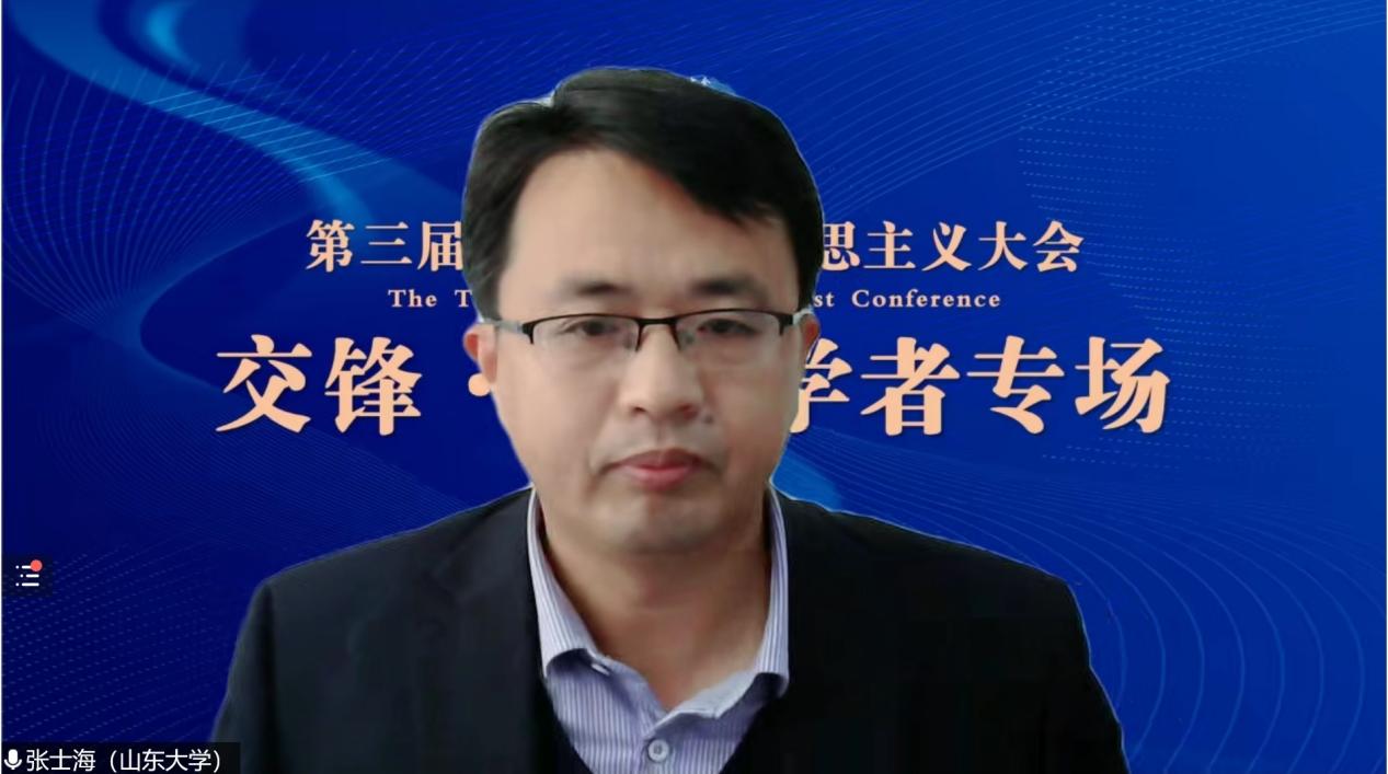 国务院学位委员会学科评议组成员、山东大学动漫h 院长张士海教授作题为《马克思主义在新时代中国为什么行》的主旨报告。他指出,马克思主义是我们立党立国、兴党兴国的根本指导思想。实践告诉我们,中国共产党为什么能,中国特色社会主义为什么好,归根到底是马克思主义行,是中国化时代化的马克思主义行。他认为,准确把握“两个行”的内在逻辑,归根到底是要把握马克思主义在新时代中国为什么行。他认为,第一,马克思主义是科学的理论;第二,中国共产党具有强大的理论创新能力;第三,习近平新时代中国特色社会主义思想是理论创新的最新成果,是人民至上的理论。