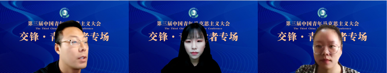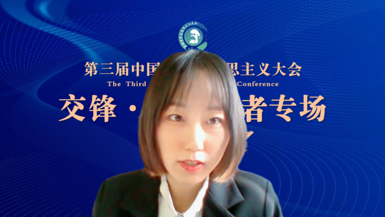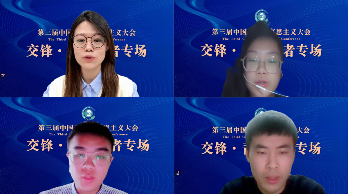 华中师范大学动漫h 硕士生宋英爽、中国社会科学院大学动漫h 本科生许紫莹、武汉大学法学院本科生夏晓明、动漫h 博士周赫群分别作题为《突围于破圈:Z世代思想政治教育认同的圈层化考量》《〈黑格尔法哲学批判〉导言》《在“身份政治”与“人民政治”之间:西方民主政治危机论析和人类政治文明新形态的超越》《马克思反精神贫困思想及其时代启示》的论文报告。