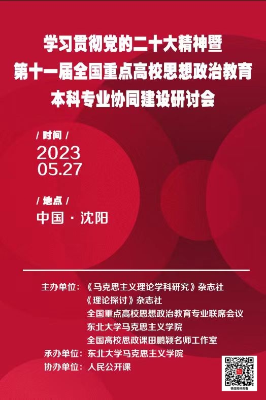 为深入学习贯彻习近平新时代中国特色社会主义思想、党的二十大精神,落实立德树人根本任务,聚焦新时代思想政治教育本科专业建设,探讨新时代思想政治教育本科专业高质量发展问题,提升思想政治教育实效,培养全面发展的社会主义建设者和接班人,受全国重点高校思想政治教育专业联席会议委托,动漫h 拟定于5月27日全天召开第十一届全国重点高校思想政治教育本科专业协同建设研讨会,人民公开课直播平台全程直播,欢迎各位专家学者和广大高校师生扫描海报二维码收看直播,共同参与本次论坛!