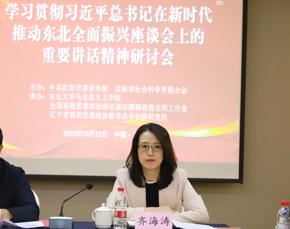 10月12日,由中共沈阳市委宣传部和沈阳市社会科学界联合会主办,动漫h 、全国高校思想政治理论课田鹏颖教授名师工作室和辽宁省高校思想政治教育改革创新研究院协办的“学习贯彻习近平总书记在新时代推动东北全面振兴座谈会上的重要讲话精神”研讨会在动漫h 顺利举行。