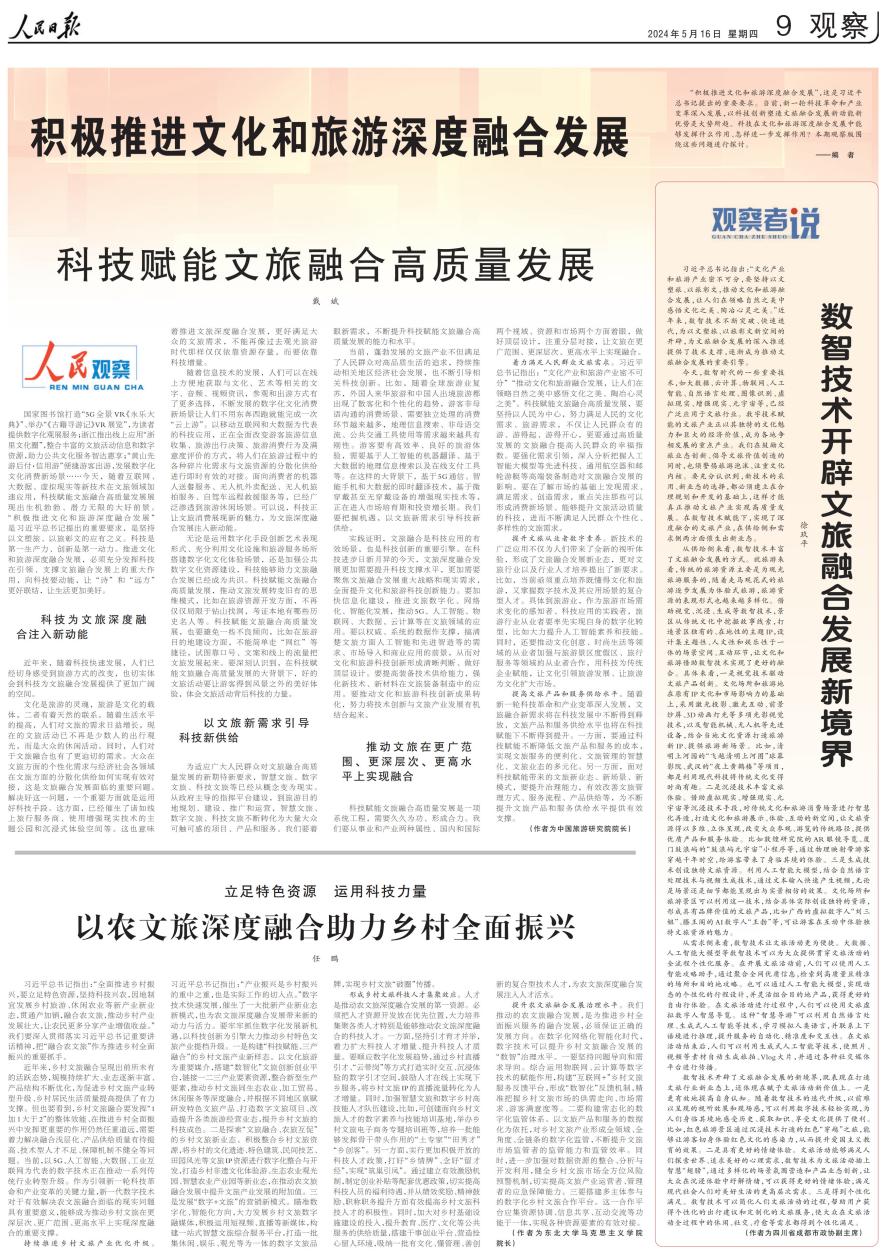 5月16日,动漫h 院长任鹏教授撰写的《以农文旅深度融合助力乡村全面振兴》一文在《人民日报》发表。