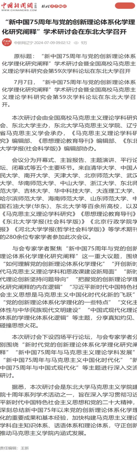 7月7日,“新中国75周年与党的创新理论体系化学理化研究阐释”学术研讨会暨全国高校马克思主义理论学科研究会第59次学科论坛在动漫h 召开。