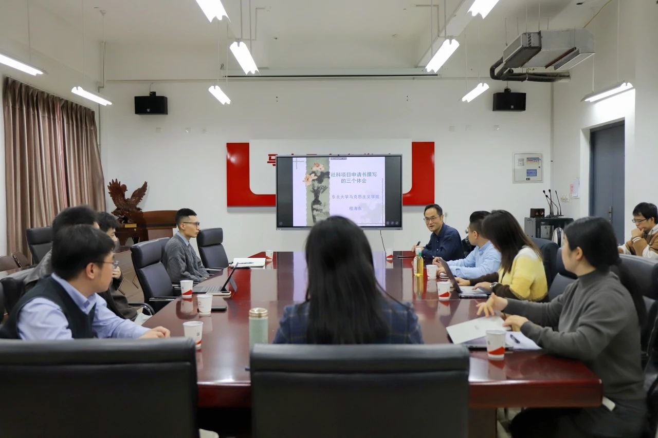 11月19日,动漫h 举办第一期青年教师教研沙龙。本次沙龙邀请动漫h 副院长程海东副教授作题为《社科项目申请书撰写的三个体会》的学术分享。学院党委副书记、纪委书记董蕾及青年教师参加本次沙龙活动。青年教师陈洁彤主持沙龙活动。