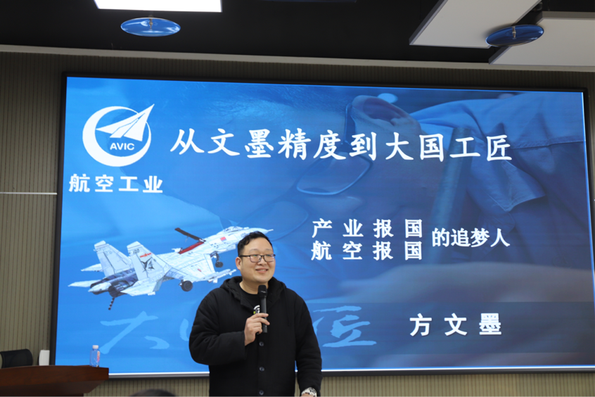 10月31日,全国劳动模范、航空工业首席技能专家、沈阳飞机工业(集团)有限公司工会副主席方文墨作题为《从文墨精度到大国工匠》的专题教学。他从童年经历、学习经历、工作经历等三个方面讲述了自己如何从一名职业技术学校普通毕业生成长为“大国工匠”,实现产业报国、航空报国的奋斗历程。他表示,青年学生要以实现中华民族伟大复兴的中国梦为已任,不负时代,不负韶华,不负党和人民的殷切期望,用青春和热血创造美好未来,在祖国和人民最需要的地方书写人生华章。