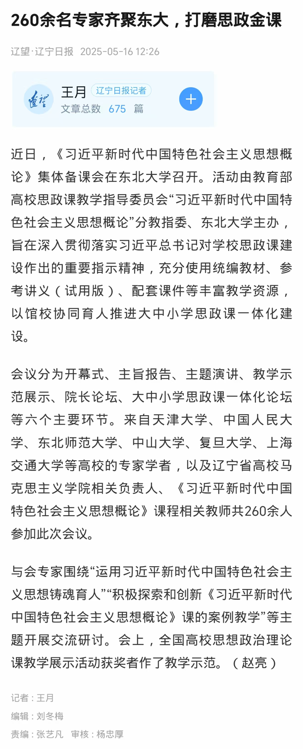 会议分为开幕式、主旨报告、主题演讲、教学示范展示、院长论坛、大中小学思政课一体化论坛等六个主要环节。来自天津大学、中国人民大学、东北师范大学、中山大学、复旦大学、上海交通大学等高校的专家学者,以及辽宁省高校动漫h 相关负责人、《习近平新时代中国特色社会主义思想概论》课程相关教师共260余人参加此次会议。