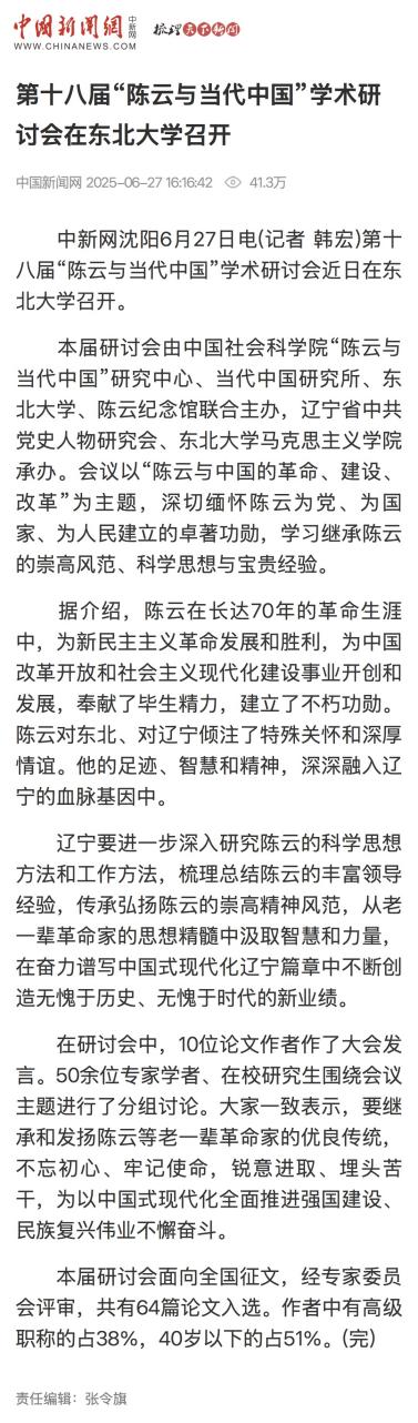 中新网沈阳6月27日电第十八届“陈云与当代中国”学术研讨会近日在动漫h 召开。